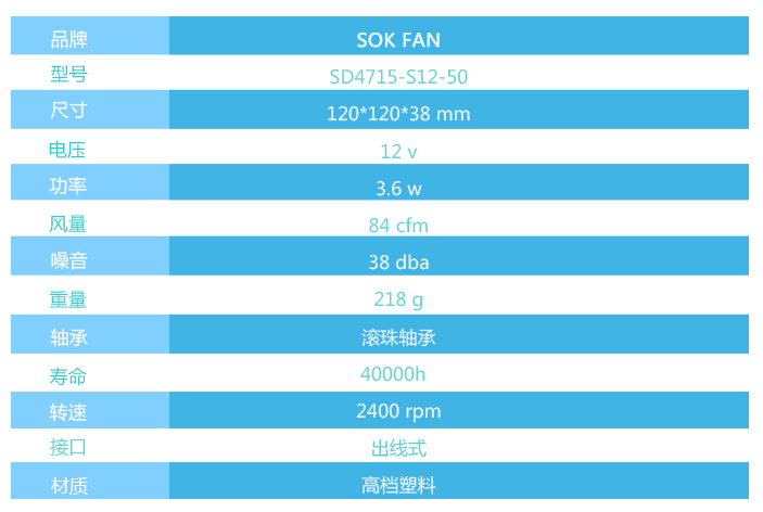 SD4715-S12-50 12V 0.3A 12cm 2線散熱風扇