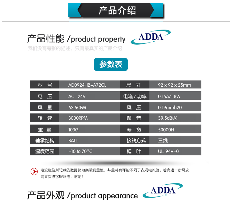ADDA AD0924HB-A72GL 24V 0.15A 9厘米3線風機