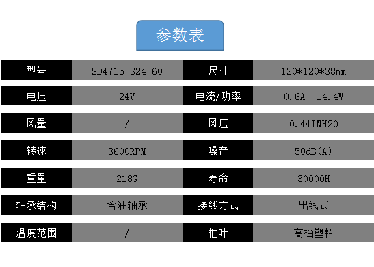 國產SD4715-S24-60 DC24V 0.6A 12CM 2線風機