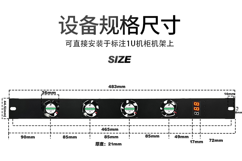 JMF-1U-D404型·機柜溫控風扇單元為我司原研產品,1U標準尺寸,內置4個大風量直流散熱風機,設備主要用于機箱機柜的抽/排風散熱