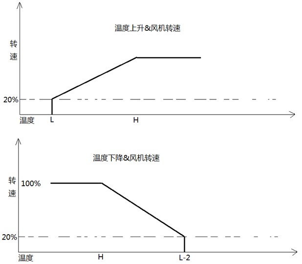 (L為啟動溫度值,H為全速溫度值,此兩項參數用戶可自由配置)