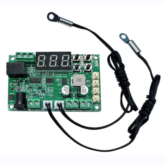 雙溫度探頭實時測溫,調速器通過檢測到溫度來控制風機的電源電壓,從而實現風機轉速控制,