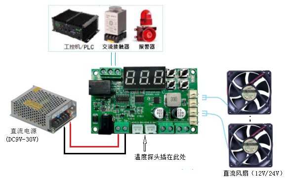 調速器還支持一路獨立的溫控開關(繼電器輸出),可用于高溫報警,溫控加熱/制冷等領域