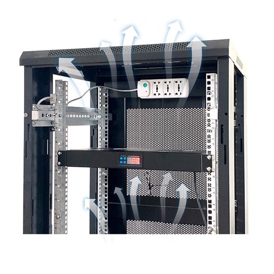 我司專利開發出一款 新型機柜溫控散熱機,散熱機集成 2~4個大風量靜音風扇,1U安裝尺寸,安裝方面,插電即用,